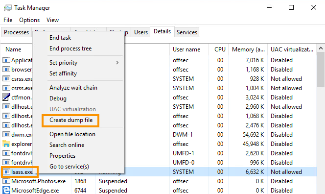 Write-Host("Got lsass.exe PID: $lsassPid.")