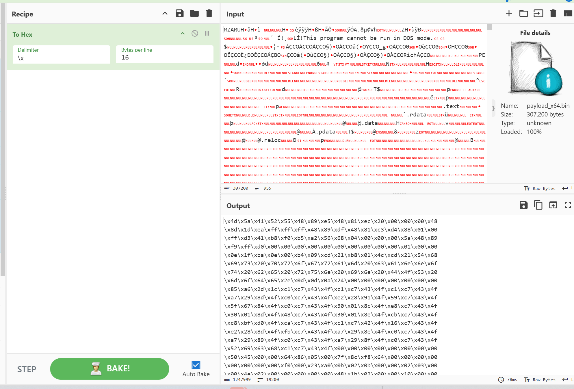 Convert raw shellcode to raw binary format