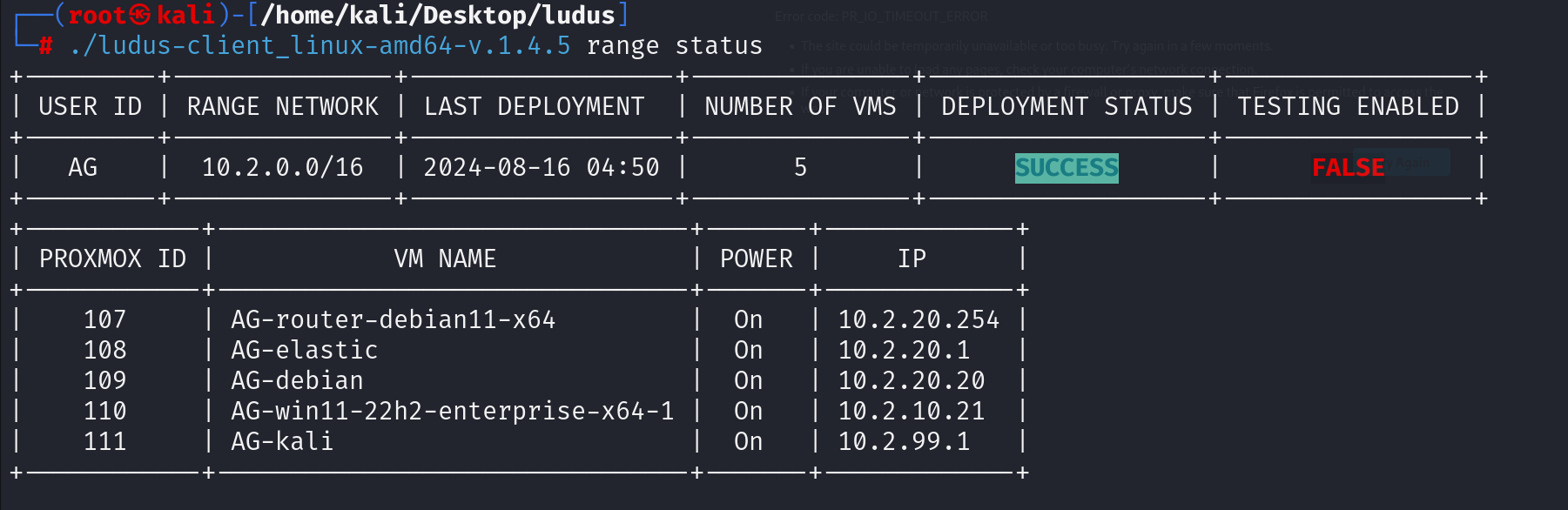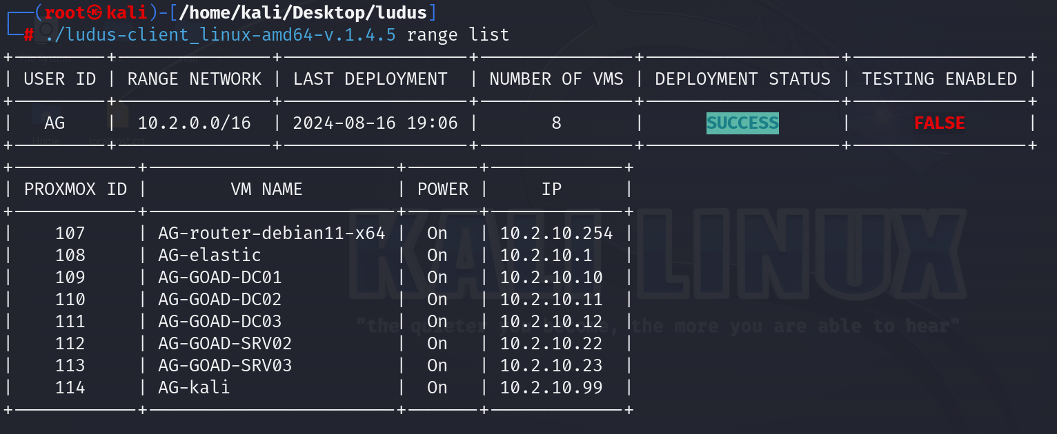 After you've finished setting up ludus, you are now ready to deploy ranges. There are multiple environments you can set up. A complete list can be found here: 🏗️ Environment Guides | Ludus.