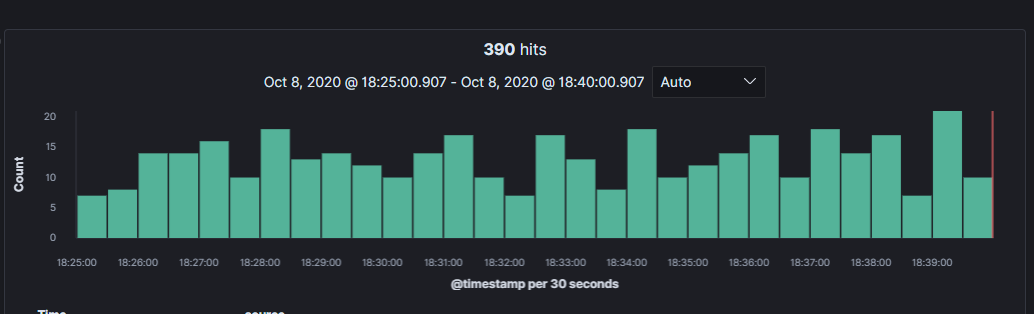 Now you can see if you can find the data in Discover. Click on the Discover tab and change the index pattern to one that you just created.