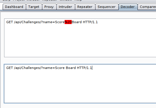 What character does the %20 in the request we copied into Decoder decode as? Space