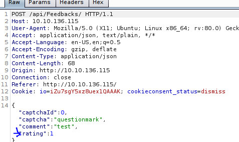 With the Burp proxy on submit feedback. Once this is done, find the POST request in your HTTP History in Burp and send it to Repeater.