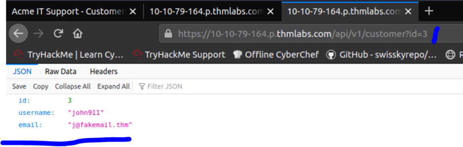 You can try testing this id parameter for an IDOR vulnerability by changing the id to another user's id. Try selecting users with IDs 1 and 3 and then answer the questions below.