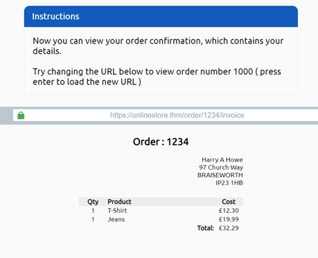 Imagine you've just signed up for an online service, and you want to change your profile information. The link you click on goes to http://online-service.thm/profile?user_id=1305, and you can see your information.