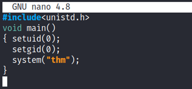 Creating this command is fairly easy by copying /bin/bash as “thm” under the /tmp folder.