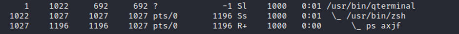 • ps -A: View all running processes* ps axjf: View process tree (see the tree formation until ps axjf is run below)
