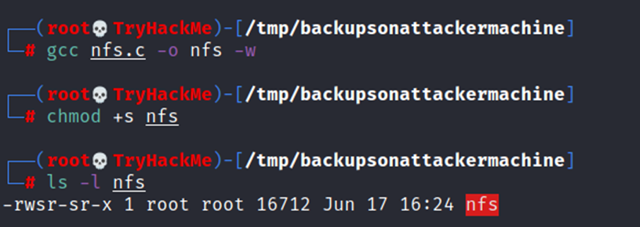 Notice the nfs executable has the SUID bit set on the target system and runs with root privileges.