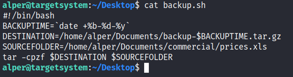 You can see the backup.sh script was configured to run every minute. The content of the file shows a simple script that creates a backup of the prices.xls file.