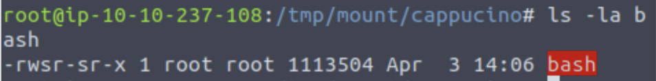 Now we’re going to add the SUID bit permission to the bash executable we just copied to the share using “sudo chmod +{permission} bash