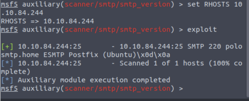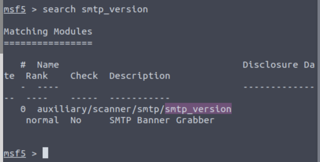 Start Metasploit and search for module “smtp_version.
