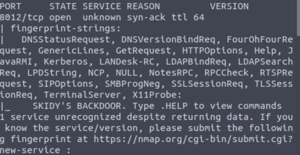 Based on the title returned to us, what do we think this port could be used for? A backdoor (SKIDY’s BACKDOOR)
