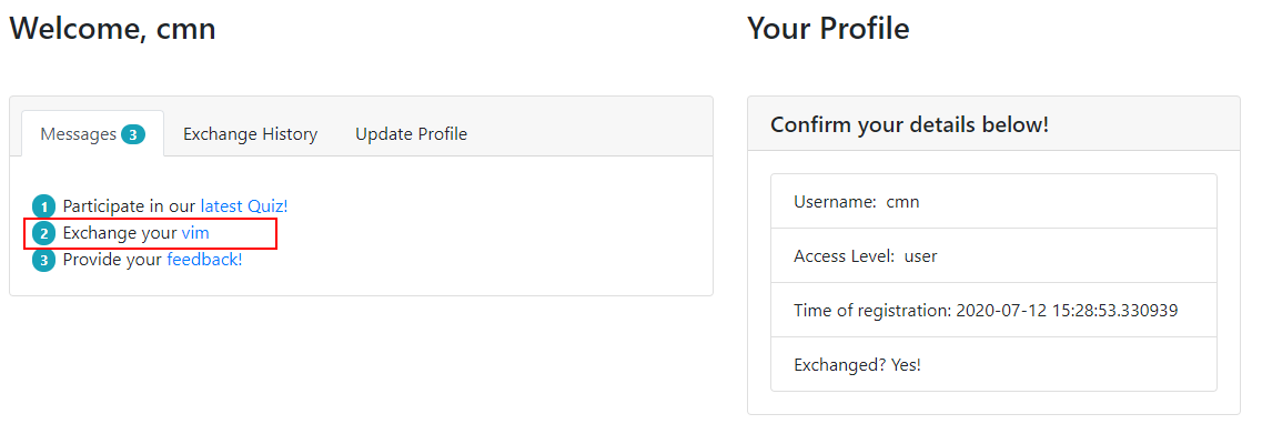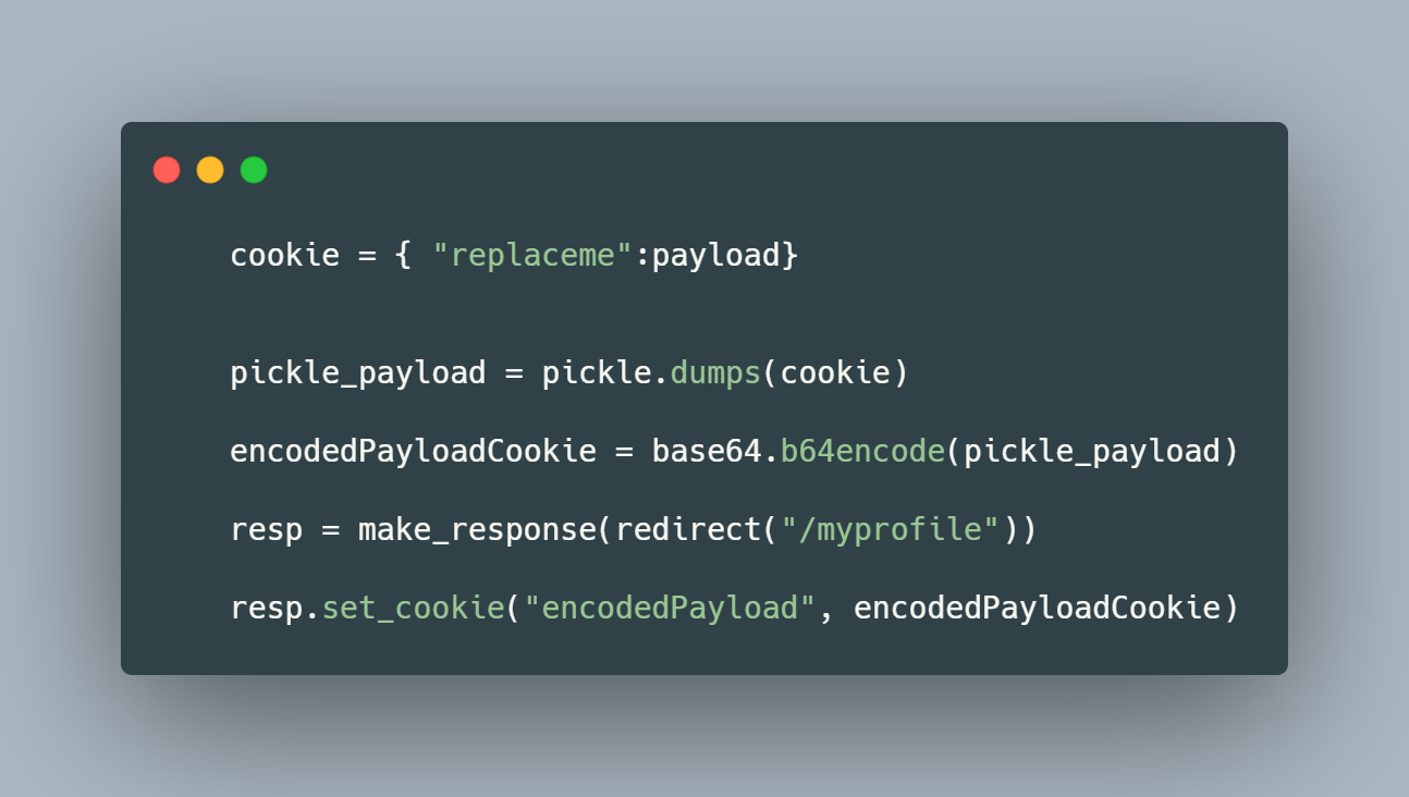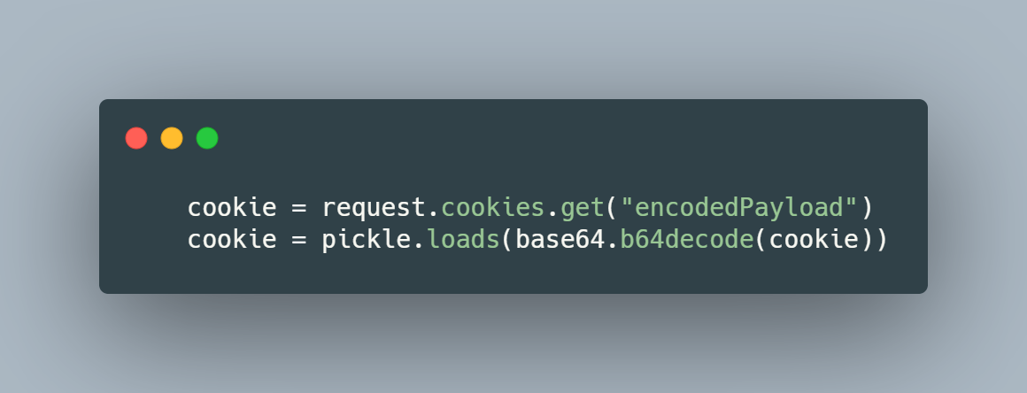 When visiting “Exchange your vim” URL, a cookie is encoded and stored within your browser. When you visit the feedback form, the value of the cookie is decoded and deserialised. In snippet below, the cookie is retrived and the deserialized via “pickle.loads”.
