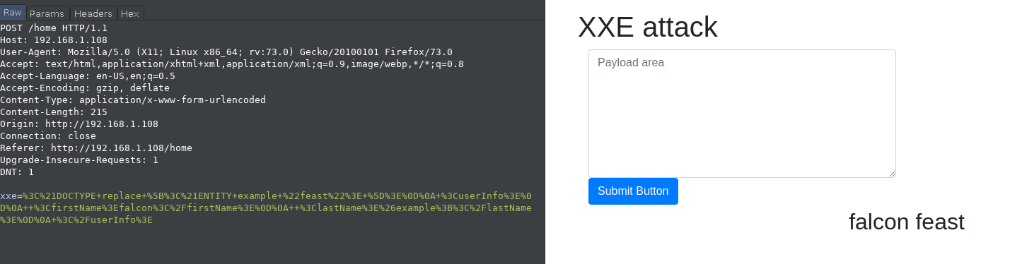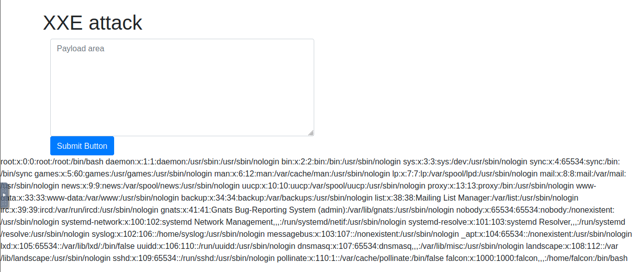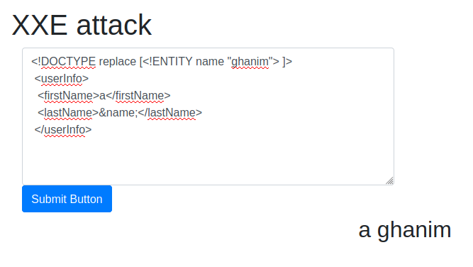 2) out-of-band XXE attacks (also called blind XXE),there is no immediate response from the web application and attacker has to reflect the output of their XXE payload to some other file or their own server.