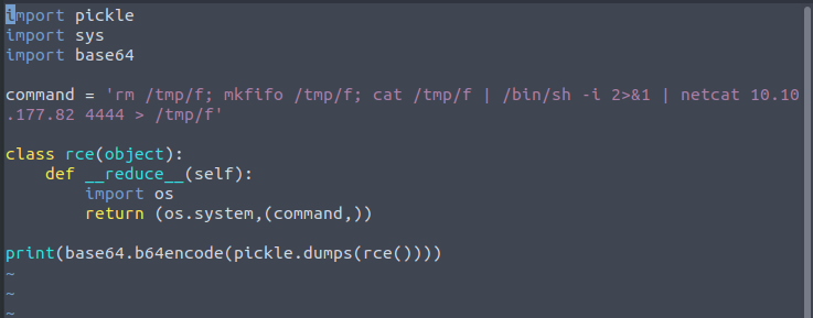 Because the code being deserialized is from a base64 format, we cannot just simply spawn a reverse shell. We must encode our own commands in base64 so that the malicious code will be executed. I will be detailing the steps below with provided material to do so.