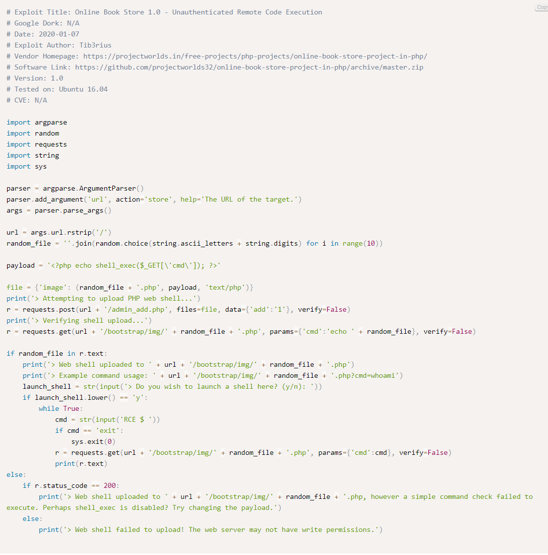 - Create python file and paste rce code from github. Change IP to your local ip.