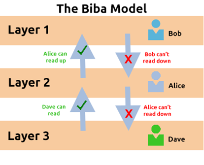 Resolves the limitations of the Bell-La Padula model by addressing both confidentiality and data integrity. Often results in delays within a business. For example, a doctor would not be able to read the notes made by a nurse in a hospital with this model.