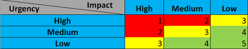 Incidents are classified using a rating of urgency and impact. Urgency will be determined by the type of attack faced, where the impact will be determined by the affected system and what impact that has on business operations.