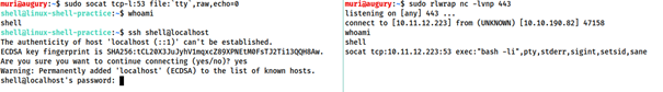socat OPENSSL-LISTEN:,cert=shell.pem,verify=0 –