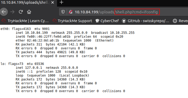This will take a GET parameter in the URL and execute it on the system with shell_exec(). What this means is that any commands we enter in the URL after ?cmd will be executed on the system – either a Windows or Linux.