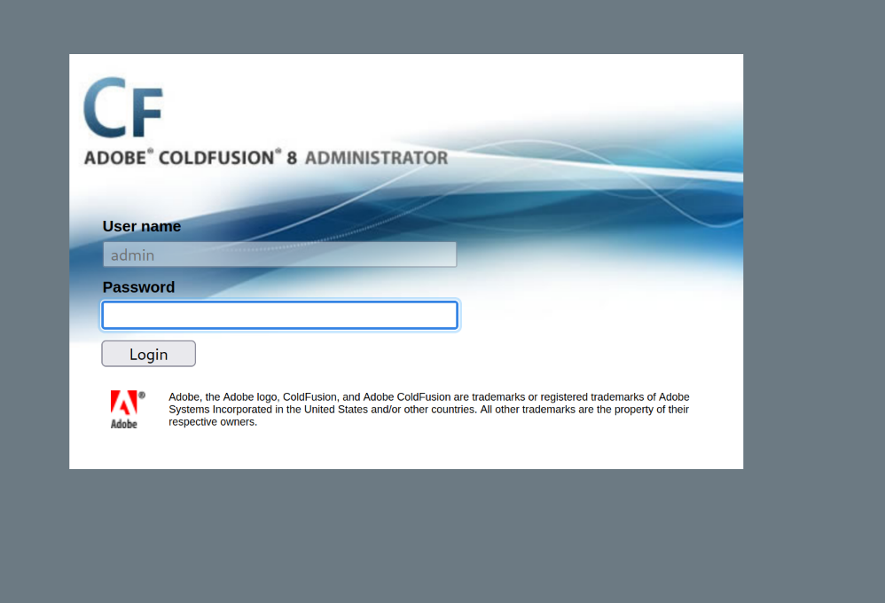 When clicking on administrator, I get a login window for Adobe ColdFusion 8. ColdFusion is most often used for data-driven websites or intranets
