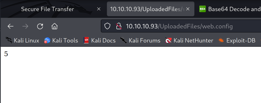 Visiting 10.10.10.93/uploadedfiles/web.config I get a response on my listener.