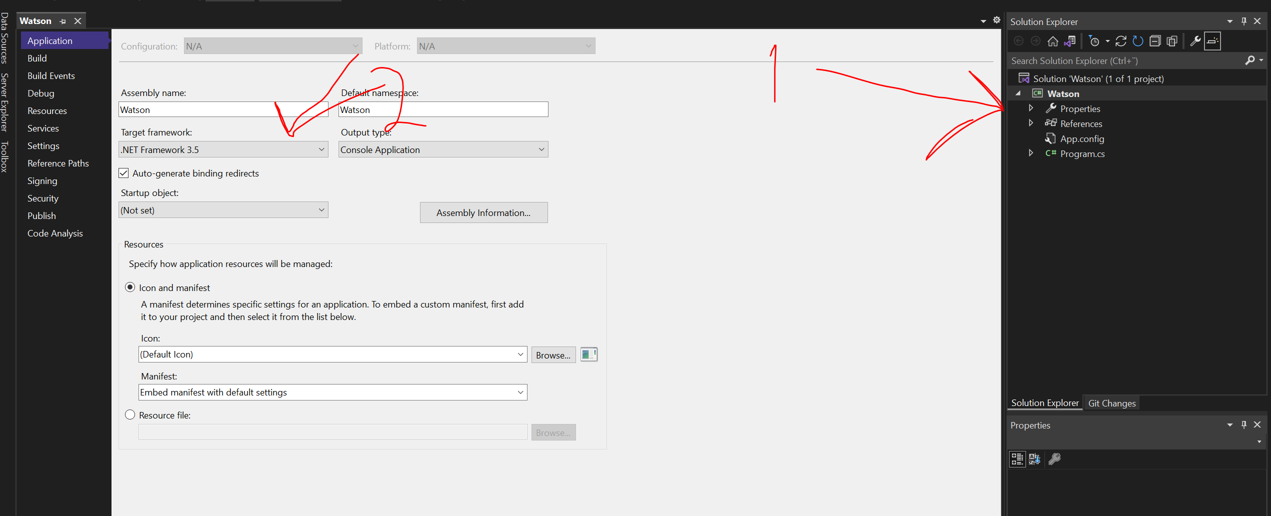 Go to Watson --> Properties and change the Target Framework to .NET Framework 3.5.