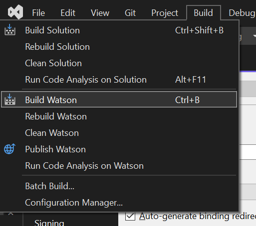 Download the correct version of Watsonthat allows us to run on Windows 7 and then open the Watson.sln in Visual Studios.