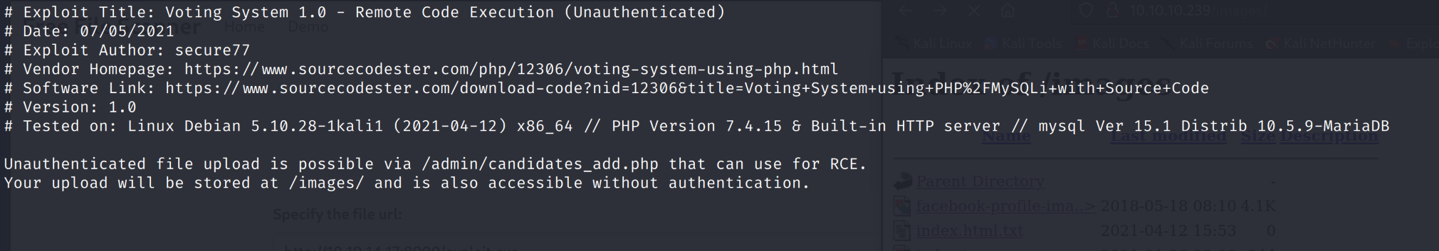 Using searchsploit we find that voting system is vulnerable to upload remote code exection.