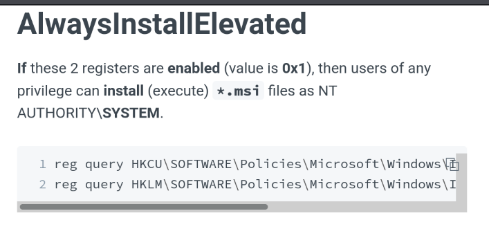 • If there is a possible SSRF vulnerabilty try to make a request to internal resources to see if there is anything intersting. * Enumerating registry could give us a hint at possible privesc vectors. In this instance Phoebe could install msi file as NT AUTHORITY\SYSTEM. * No every reverse shell will work right away. I had to try a couple of times to get the PHP reverse shell to give me a stable connection.