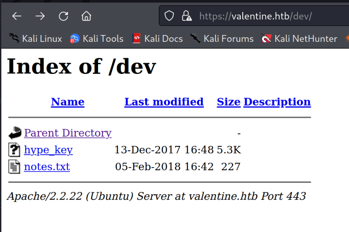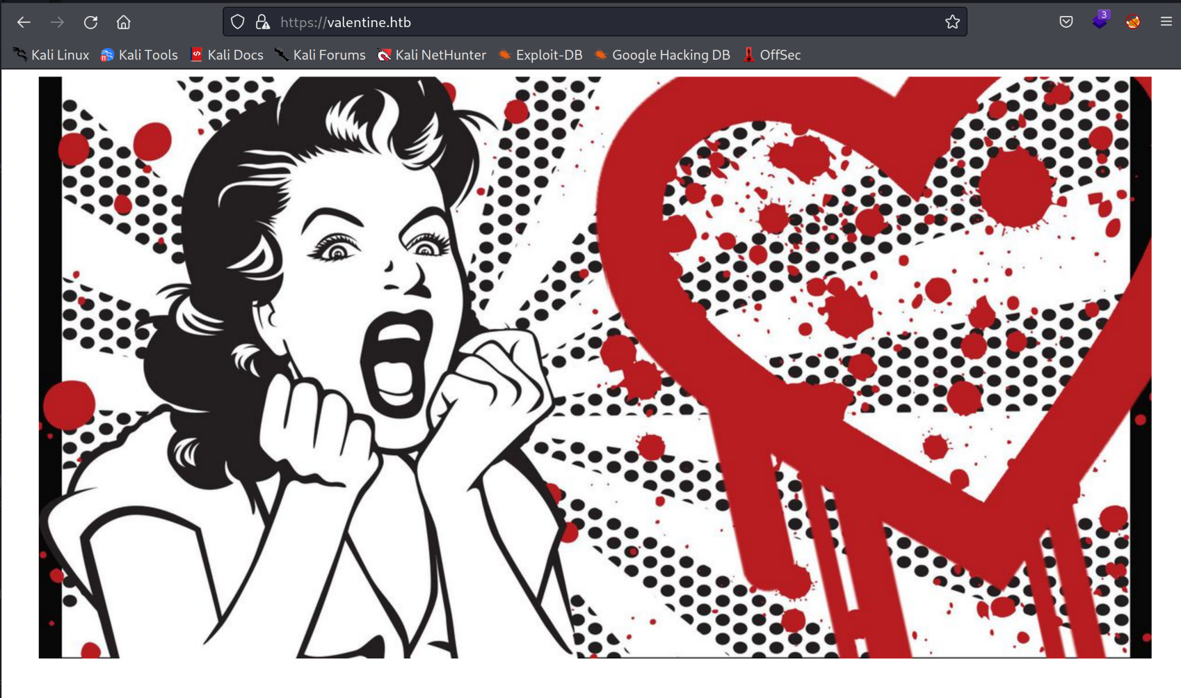On port 443 we can see that the domain for the SSL cert is valentine.htb. I added that to /etc/hosts.