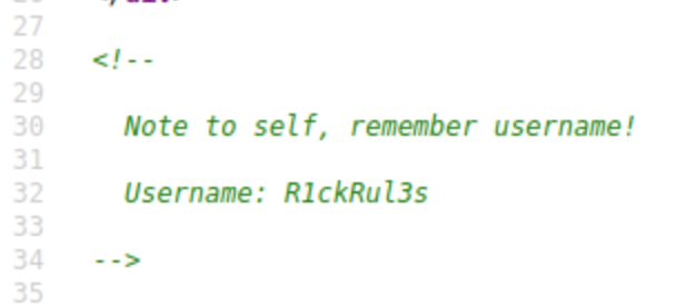 The first thing I like to do is look at the source code. We find a username: R1ckRul3s.