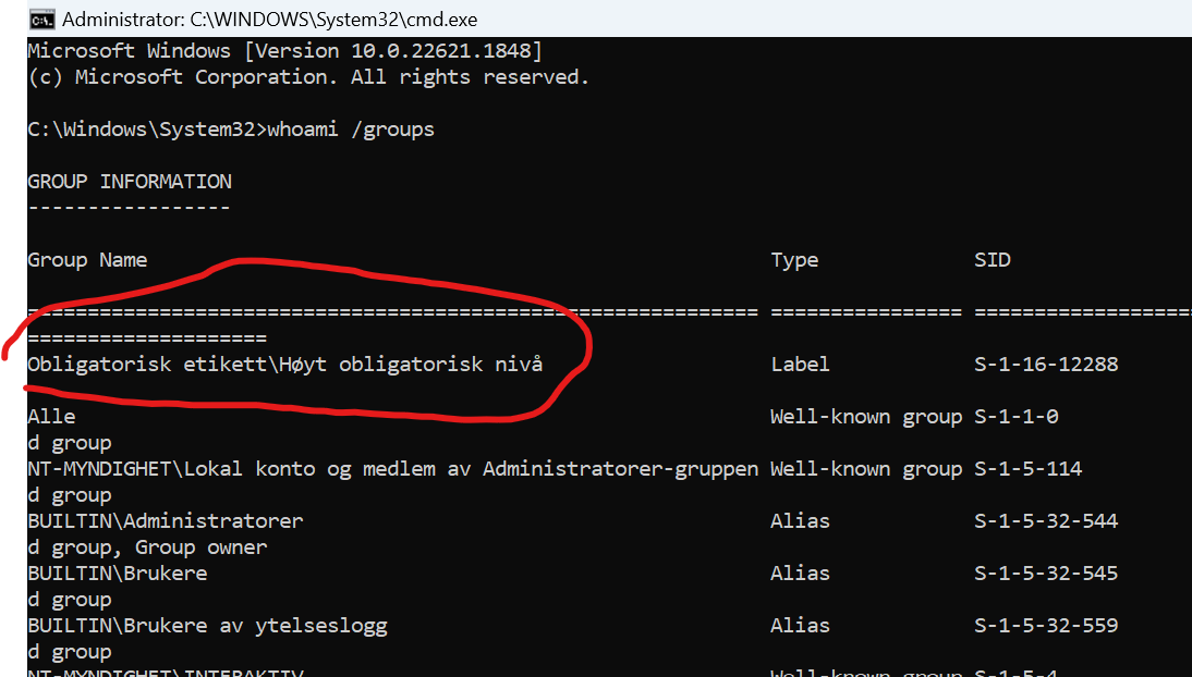 C:\Windows\system32>whoami /groups | find "Label"