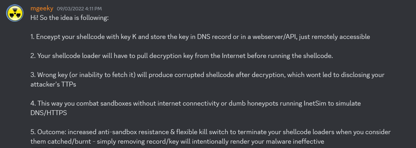 - Use Evasion techniques (checkpoint.com): Add CPU temp check, check the screen resolution, check if its a sandbox, add many random sleep functions. Use the website. For ex: Check if the system have 5 or more recent files opened, if not, dont run the payload because that might be a VM. The main goal is to check if its an actual machine or Sandbox/VM/AV Scanner. One particular if you're targeting a client machine is to check for mouse movement.